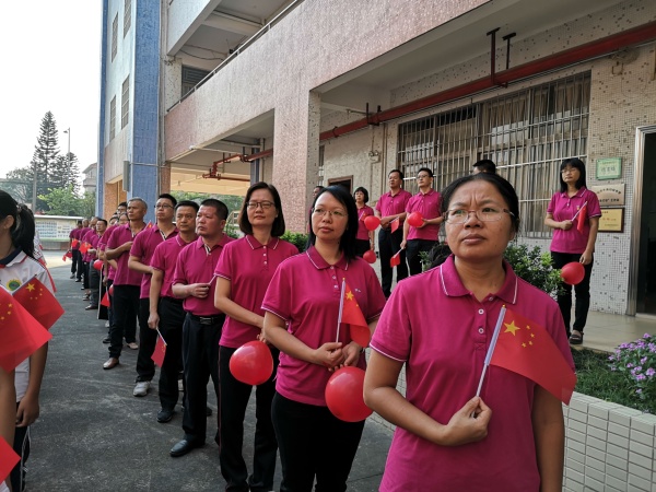 活动在庄严肃穆的国歌声中拉开帷幕,每一位师生精神饱满齐唱国歌,声势浩大,令人振奋!随后,学校党支部书记何杰华校长作了题为《礼赞新中国,奋进新时代》的国旗下讲话。何校长和全体师生一同回顾了新中国70年的辉煌成就。经济的腾飞,科技的发展,教育的改革,一条条一项项,听来无不令人满腔热血。新中国今日之强盛,离不开每一代领导集体的智慧与格局,离不开每一个中国人团结一致、奋勇向前的决心与毅力。