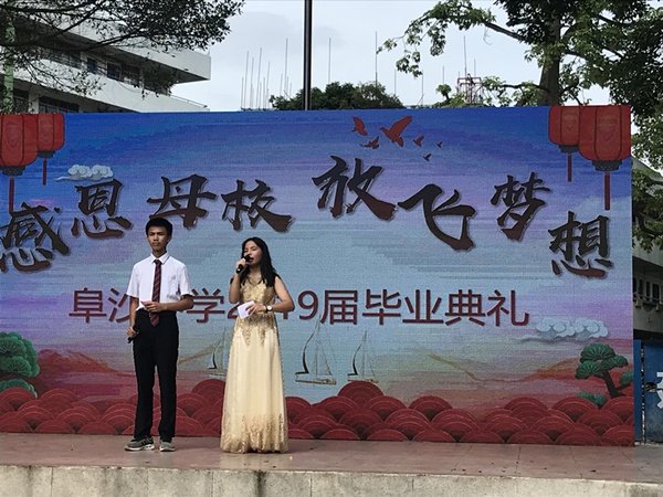 阜沙中学举行2019届初三“感恩母校,放飞梦想”毕业典礼发布时间:2019-07-06 12:34 信息来源:本网站 浏览次数:100