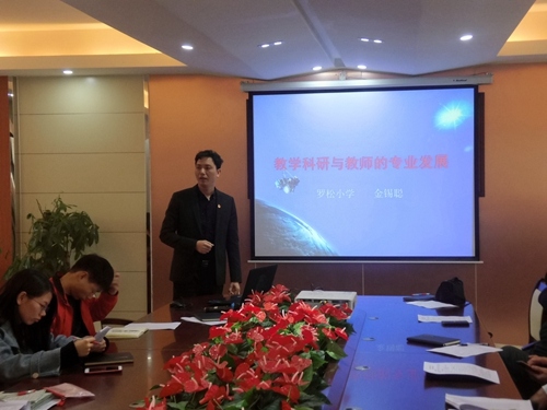 活动由金锡聪主任主持并主讲。“为什么星空体育的学校总是培养不出杰出人才?”活动伊始,金主任抛出问题,引发全体培训人员的思考。金主任再以一个有趣的故事——动物创建学校,道出学校培养不出杰出人才的缘由——缺乏挖掘。“你不上课,就不是老师;你不搞科研,就不是好老师”。引用“中国近代力学之父”钱伟长的话,金主任阐明了教学科研的重要性。他指出,当今绝大多数教师的弊病:不读书、不合作、不研究,这也成为提升教师专业发展的障碍。接着,金主任从“教师为什么要搞教学科研?”、“为什么要讲教师的专业发展?”、“教学科研=课题研究?”、“怎样的教学科研更有利于教师的专业成长?”、“教师专业成长的保障:幸福善好生活的营建”六个方面详细论述教学科研与教师专业发展的关系。
