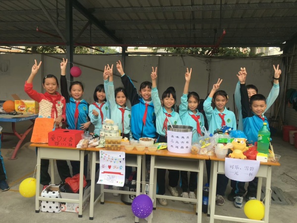 此次爱心义卖中,有的班级老师让同学们分工合作,小收银员、小服务员,忙得不亦乐乎,还有的同学为筹集更多的善款,带上物品到处找寻购买者,他们的甜言蜜语和自卖自夸让人难以招架。