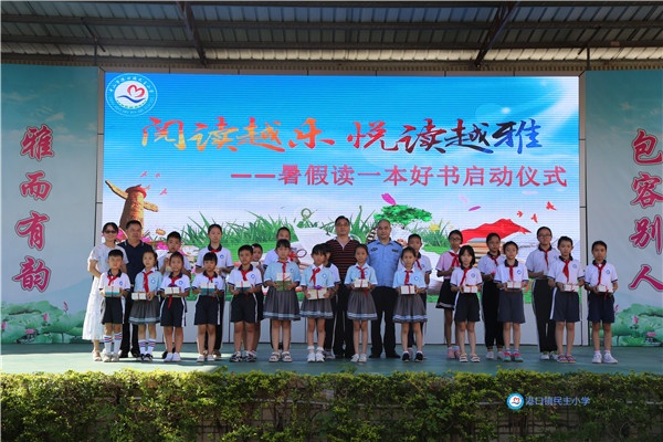 随后,由教务处主任李菲菲组织开展“暑假读一本好书”启动仪式,李主任教育孩子们在暑假要多读书,让书香浸润心田;接着,学校领导向孩子们赠送了精神食粮——书籍。然后,学校领导为本学期表现优异的学生颁发了荣誉证书,以鼓励孩子们力争上游,并和获奖学生合影留念。