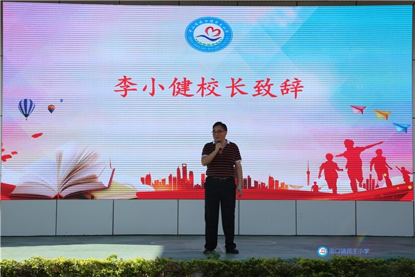 本次活动由余丽苑老师主持。典礼一开始,举行了庄严的升旗仪式。国歌响,国旗升,大家看着冉冉升起的五星红旗,表达心中对祖国的热爱。民主小学校歌《荷花少年》发布仪式紧接其后,悠扬的旋律响彻校园,孩子们都不由自主跟唱,用歌声吟唱出作为民主学子的自豪之情。接着,由李小健校长发表讲话,李校长对本学期的教育教学工作进行了总结,他高度肯定了全校师生的辛勤劳动,对师生们取得的可喜成绩表示祝贺,并对即将到来的暑假生活进行了具体的指导和安排:第一,时刻把安全和健康牢记心中;第二,每天坚持学习;第三,积极参加社会实践、居家劳动和身体锻炼,过一个安全、愉快和充实的暑假。