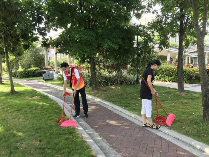 当天上午,学校的党员教师志愿者们积极投身到志愿服务活动中。志愿者们带着扫把、垃圾铲和垃圾袋等工具对公园进行清洁,大家干劲十足,在公园每一处角落寻找“战利品”。认真捡拾草坪上的落叶,清理绿化带的纸屑、烟蒂、塑料袋等生活垃圾,直到每个人的手中“战果累累”。有的党员志愿者还带上了自己的孩子,大手牵小手一同劳动,从草坪到花地,每一处都是绿色环保小卫士的身影。活动过程中,志愿者们相互协作,不怕脏、不怕累,经过近两小时的清洁,中山市湿地公园焕然一新,整洁的氛围让公园变得更加美丽温馨。