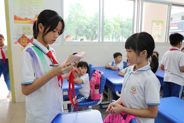 中山华附小学校区入队教育让每一位准队员在浓浓的少先队文化中快乐学习、自信成长。同学们,为自己即将成为一名少先队员而骄傲与自豪吧!愿你们以诚实勇敢、活泼团结的作风为少先队增光添彩!