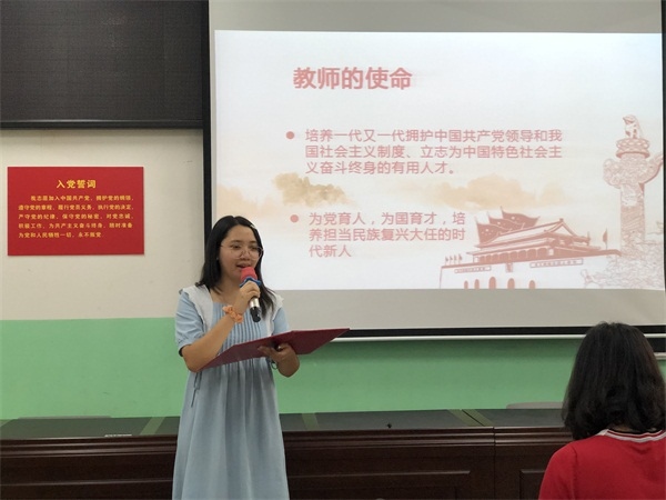 谢家潮老师的《以体育人》,讲述了体育的重要性以及自身在课堂的主阵地中如何更好地育人,频频收获老师们的掌声;刘凯银老师在演讲的《牢记使命,让青春发光》中谈到,当教师的初心是“坚守”、“进步”和“纯粹”,她希望自己永怀初心,让青春在奋斗中熠熠生辉;而吴雁琪老师演讲《不忘初心勇担当,青年奋进新时代》时,语调慷慨激昂,让在场的老师为之动容,热血澎湃。每位参赛选手们都围绕对学生的“爱”展开。“爱”源于高尚的师德,“爱”意味着无私的奉献,教师对学生的爱,是稳固的、深厚的,是与教师所肩负的社会责任紧密相连的,这种责任和爱能超越一切,汇聚成一股无可阻挡的力量,帮助孩子们推开世界的门。