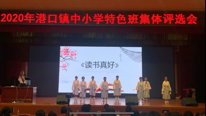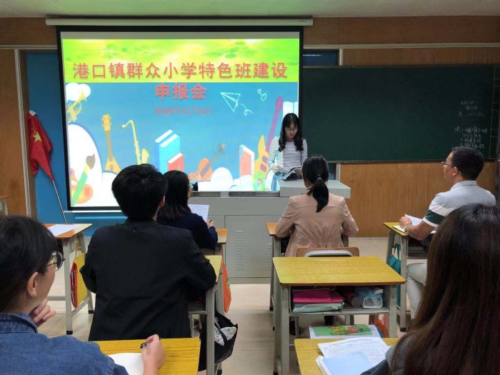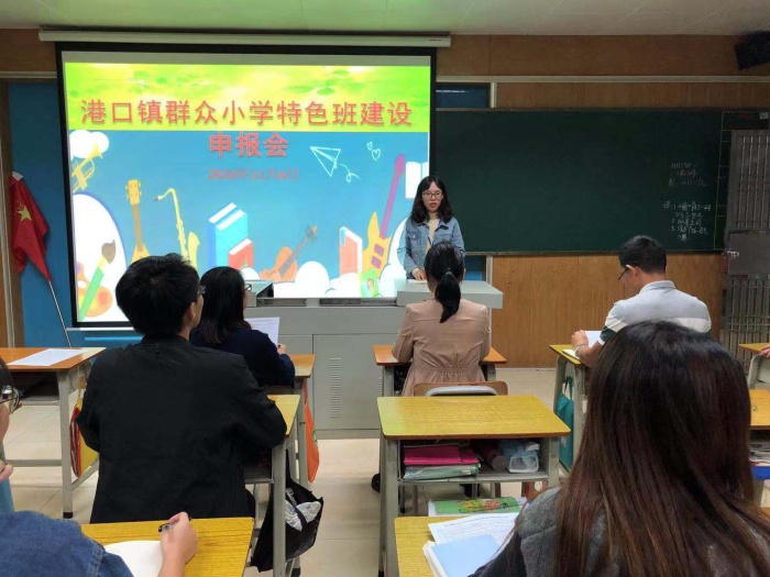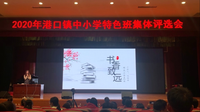 11月30日下午,“港口镇2020年中小学特色班集体”评选活动在华师附小举行。港口镇每所中小学的参评班集体都由班主任进行了10分钟的汇报分享。群众小学的凌钰琪老师在汇报中大展教师和班集体的风采。她以“书香致远”为主题,通过一段精美的视频介绍了班风建设、文化布置、特色活动等等,最后由学生带来深情的朗诵《读书真好》,让大家感受到了一个书香四溢的班集体。凌老师经过长期积累、精心准备,得到了评委及现场老师们的一致好评,最终荣获“2020年港口镇特色班集体”的称号。