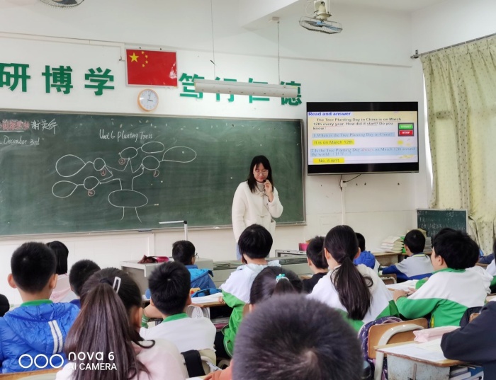 第一节课由三角镇中心小学英语老师杨秀文老师执教。杨老师的课思路非常清晰,与学生配合完美。此外,她的教学指令明白简短,学生一听就会;在阅读之后杨老师给学生播放了关于环保、植树造林的英文小视频,引起了学生和听课老师们的兴趣,激起师生间的思维碰撞,让师生相互诱导、成长,达到融为一体的境界。