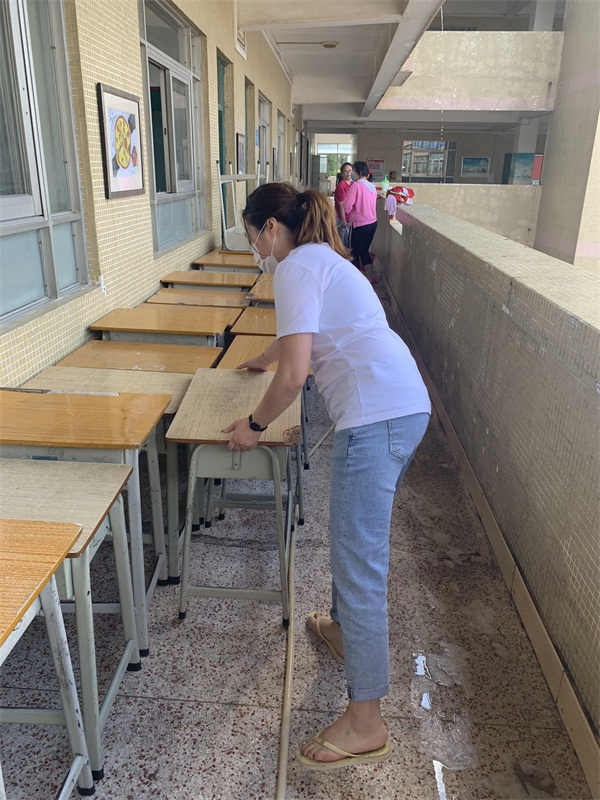 活动开展前,学校精心做好消毒准备工作,各级行政制定详细的消毒方案,并准备好清洁、消毒所需的水桶、喷雾器、84消毒液、抹布等物品。5月5日上午,校园清洁与消毒工作正式拉开帷幕,志愿者们热火朝天地开展教室内外的大清洁活动,发挥不怕脏不怕累的精神,身体力行,清理教室内的卫生死角:窗户、风扇、图书柜等,并且严格按照要求,单人单桌摆放桌椅。教室外的走廊、楼梯过道也清洁消毒到位。清洁过后,教室干净整洁,焕然一新。