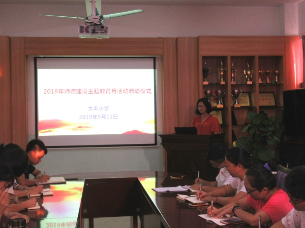为进一步加强师德师风建设,全面提升教师思想政治素质和职业道德水平,9月11日,大丰小学在会议室举行了2019年师德建设主题教育月启动仪式。
