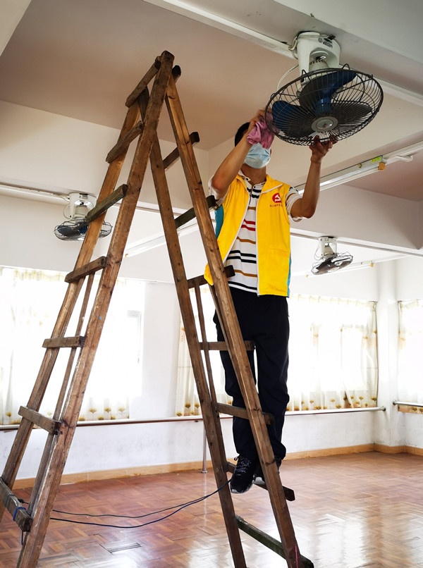 活动开始前,学校进行了周密安排和部署,并严格按照防疫要求,避免人员聚集,分组负责相应区域,各司其职。各班班主任全面认真打扫了教室、走廊,从课桌到地面,从天花板到门窗,从室内到室外,不放过任何一个角落。对于自己的办公环境,老师们也是严格要求,擦门,洗窗,收拾桌面;扫地,拖地,除蜘蛛网……大家的衣服脏了,脸上出汗了,也毫无知觉,依然将校园的每个角落都打扫得干干净净,消毒得彻彻底底,充分发挥了“不怕苦、不怕累、不怕脏”的精神。经过老师们的共同努力,打扫后的校园窗明几净,在阳光下显得更加温暖有活力.