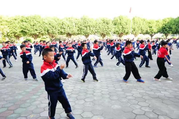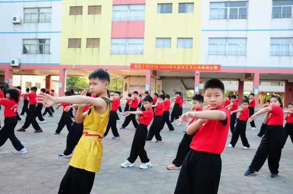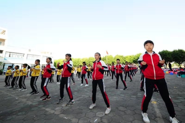 为响应广东省教育厅,广东省武术协会“武术进校园”的号召,进一步推动传统体育项目咏春操的实施,提高教学质量,增强学生体质,培养学生集体荣誉感,激发学生的运动兴趣,促进学生德智体全面发展,11月29日下午,西街小学举行全校学生咏春操比赛。据悉,西街小学自2013年起开始推广咏春拳,