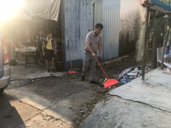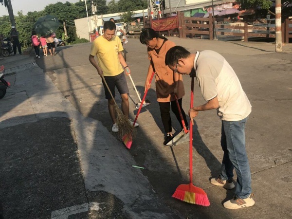 党支部书记黄权炎同志带领党员校园门口以及校园周边路段。看似简单的劳动,干起来却不容易。健身广场门口的草丛里,出现许多玻璃酒瓶,仅用扫把根本就没有办法把它们扫出来。老师们只好徒手从草丛里把垃圾捡出来,才算完美地完成了任务。各位党员教师积极合作,干得热火朝天,展现出不怕脏、不怕累的精神风貌。经过一个小时的大扫除行动,校园门口以及周边环境变得焕然一新。