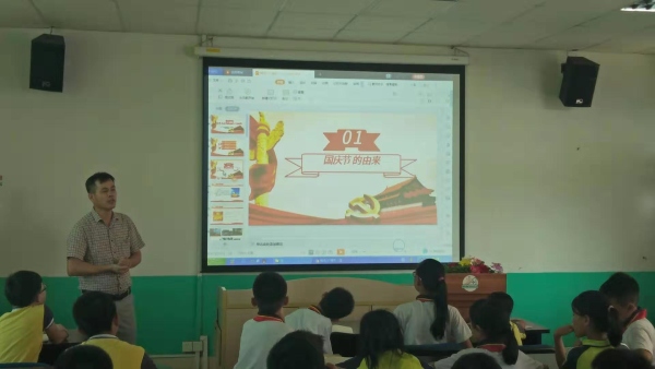 中南小学校长黄权炎以隆重庆祝新中国成立70周年为主基调,从国庆节的由来、新中国成立的伟大意义、国旗的深刻内涵、新中国五代领导人以及中国的光辉历程为授课内容,回顾了这70年来取得的伟大成就,从新中国的成立、抗美援朝、改革开放、一国两制等诸多方面进行阐述,增强师生的爱国之情。让师生一同感受在改革开放时期国家的各种变化,从1949年新中国的成立,到1978年召开的十一届三中全会确定了对外开放的政策,再到2017年党的十九大的召开,无不体现了全国各族人民、各领域的艰苦奋斗。向学生直观、全方位展现了新中国成立70周年的辉煌成就和中国站起来、富起来与强起来的光辉历程,让学生们更加清晰地认识到中国共产党的坚强、正确领导是中国能够迈向“两个一百年”,迎来复兴前景的根本原因。