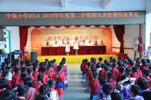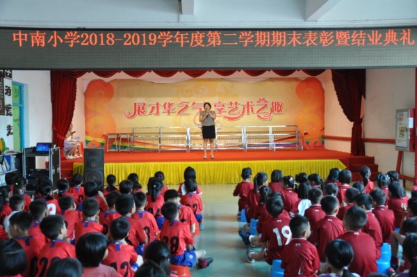 2019年7月5日上午,中南小学举行了2018-2019学年度第二学期期末表彰暨结业典礼,全体师生参加了会议。