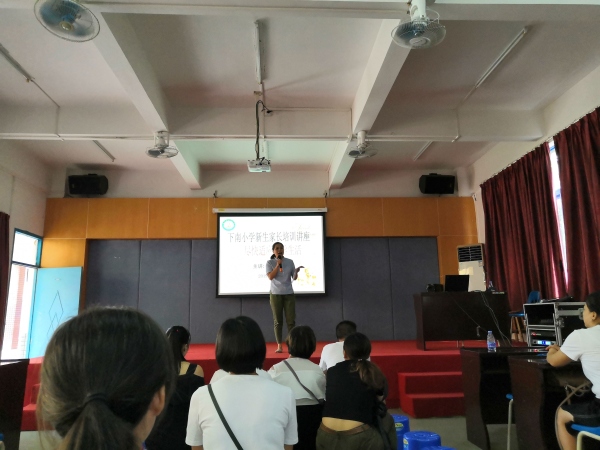 2019年8月31日,在港口镇下南小学报告厅进行了2019-2020学年新生家长培训活动,培训时间为一天,由少先队大队辅导员戴艳琳主持本次培训活动。