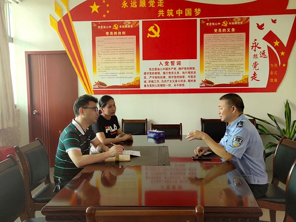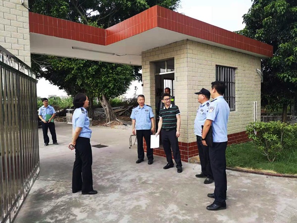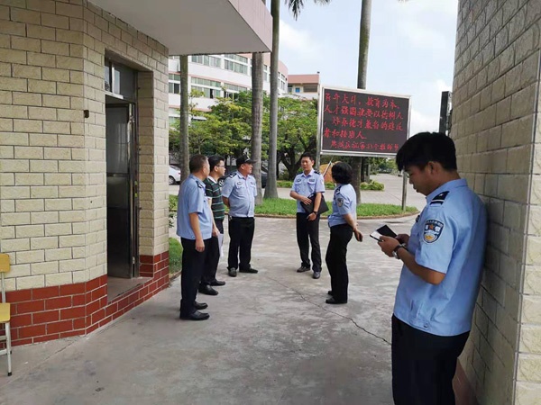 为了确保中秋、国庆两节安全稳定,促进校园安全防范工作 ,2019年9月11日上午,民众镇公安分局治安大队以及港口镇大南派出所林权明警官等一行7人来到港口镇大南中学督导校园安全工作,大南中学校长张育文、副校长廖建红等行政干部及安保人员陪同检查。