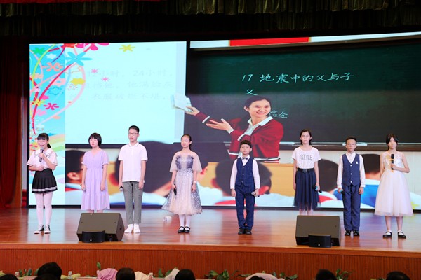 紧接着级组长林改平老师带领着六年级八位班主任,走上舞台,带来了一首精彩的诗朗诵《孩子,我想对你说》,向孩子们表达了最美好的祝愿。