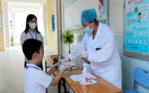此次演练模拟了某班某天上午第3节课上课期间有1名学生发热的突发状况,参与演练的人有学生和科任老师、还有班主任、级组长、值班行政、常务副校长以及校医。演练中,大家按照演练预案,认真做好每一项演练内容。课堂上科任老师及时发现情况,及时报告;学校第一时间根据相应规定,快速、科学地进行处置。对发现体温异常的学生,逐级上报疫情,配合做好转运工作。紧接着学校启动预警机制。同时根据市镇(区)疾控中心流行病学调查报告,启动应急预案,落实停课、健康风险告知等应急措施。