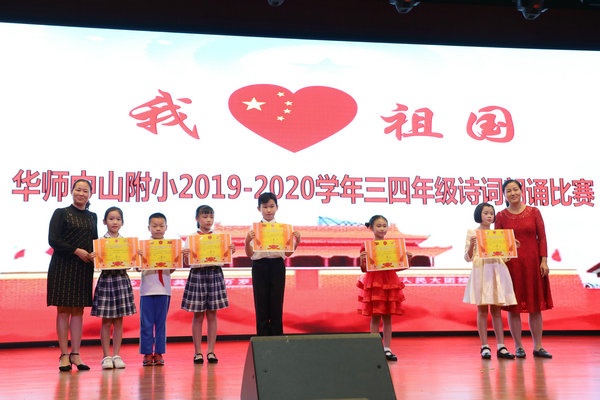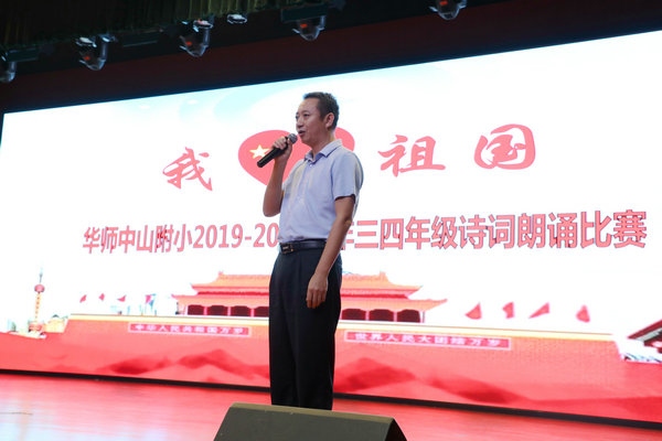 为祝福伟大新中国70华诞,感受中国人民70年奋斗历程,9月28日下午,华师中山附小师生齐聚学校大礼堂,举行了“我爱祖国”诗歌朗诵比赛。三四年级10个班根据抽签顺序,依次上场,活动的评委由学校行政、级组长、家委等组成。