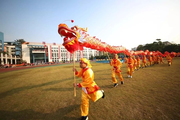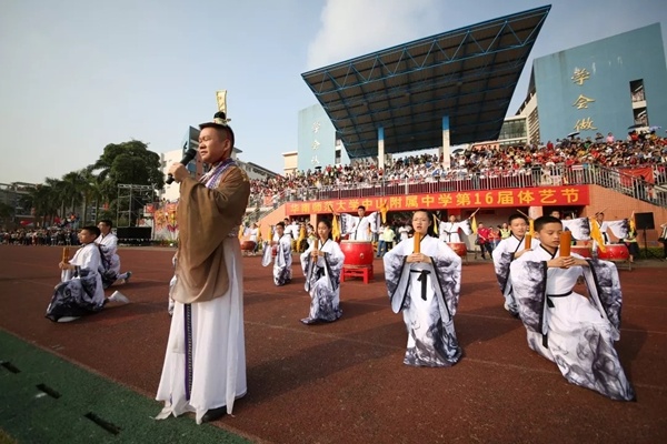 庄严的升旗仪式后,总校长刘诗雄宣布:华南师范大学中山附属中学第十六届体育艺术节开幕!生动的龙狮表演精彩上演,正式拉开本届体艺节序幕。