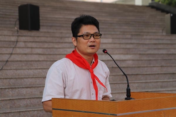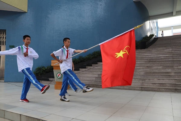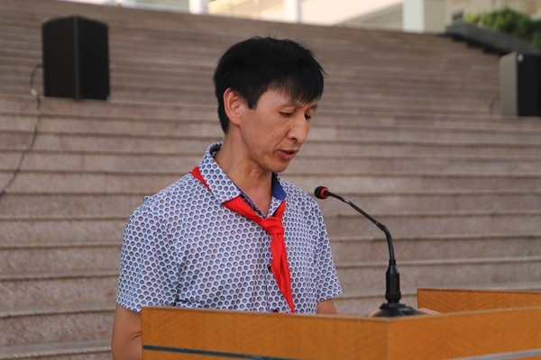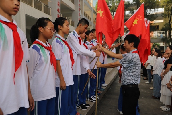 接着,陈丽芬书记代表大队委员会宣读了《关于成立华师中山附中初一年级少先队大队部及聘请大队辅导员的决定》,并为大队授旗。连进城助理发表讲话,提醒同学们时刻铭记肩上的责任。