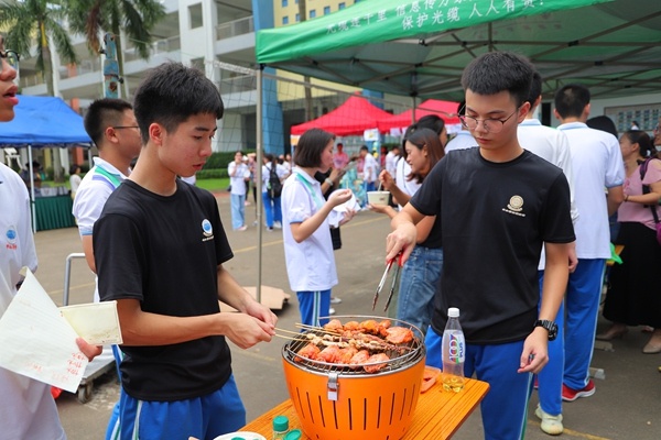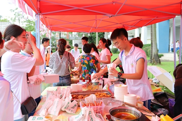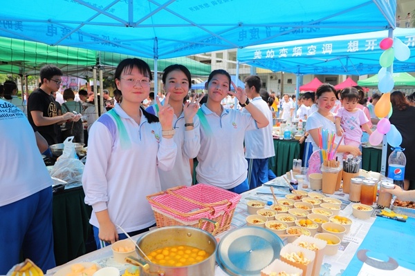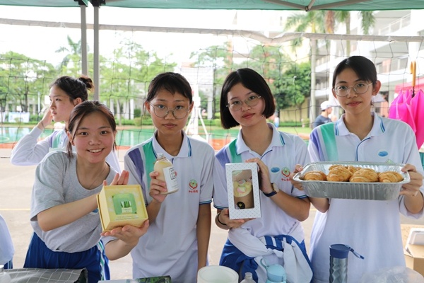 6月5日下午,华南师范大学中山附属中学排球场里人声鼎沸,国际部慈善义卖活动吸引了不少师生参与其中。