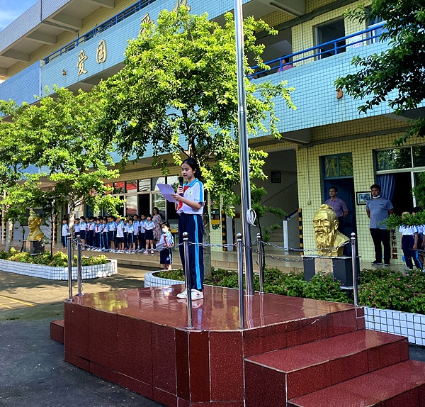 升旗仪式上,五(1)班曾紫恒同学进行了防溺水主题的国旗下演讲,以各地历年发生的学生溺水事故为例,以惨痛的真实事件在同学们的心中敲响警钟,让同学们学会尊重生命,善待生命。
