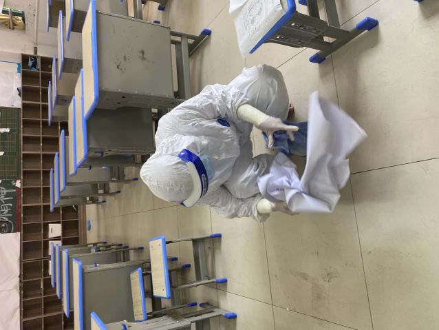 任课教师及时带领余下学生有秩序离开课室,到备用点等候,后勤安排人员对原教室进行开窗通风和全面消毒。