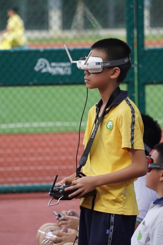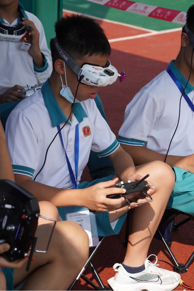 最紧张刺激的赛事当属“青蜂号“FPV竞速赛,选手配带目镜,以第一视角操控“青蜂号“无人机,无人机速度极快地穿越障碍,选手犹如驾驶宇宙飞船在时间隧道中飞行,最快速度通过所有障碍的选手胜出,胜负就在毫厘之间。经过两天的角逐,各奖项名花有主,其中最紧张刺激的“青蜂号”FPV竞速赛冠军被来自中山市小榄花城中学的陈铭以33.7秒的成绩获得;遥控电动绕标竞速赛冠军被来自广州市第二中学南沙天元的李皓哲以22.43秒成绩获得。