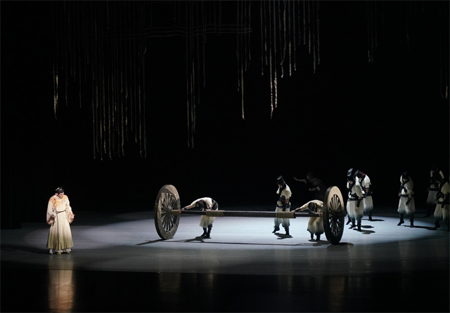 他还举例说,在《兵车行》的舞段,虽然群舞演员始终保持着一个前后耸肩往前迈步的镜头,但每一次的迈步演员的状态和层次都不一样,它其实是出杜甫看到这些服兵役的百姓内心波澜起伏的体现。