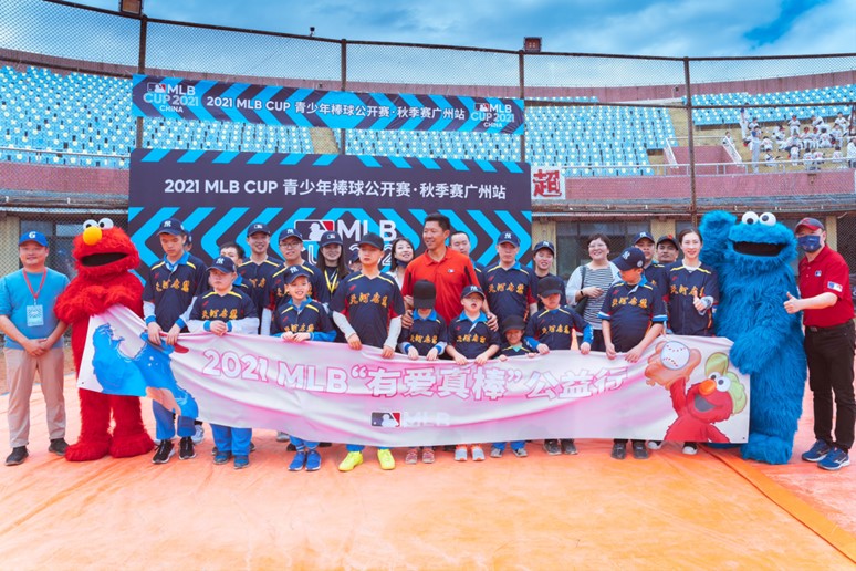 日前,2021 MLB CUP青少年棒球公开赛·秋季赛广州站在广东黄村体育训练中心棒球场举行,球场上有飞奔的少年,有练习棒球的启慧儿童,还有芝麻街毛茸茸的好朋友甜饼怪、艾摩,他们一起享受棒球带来的快乐。