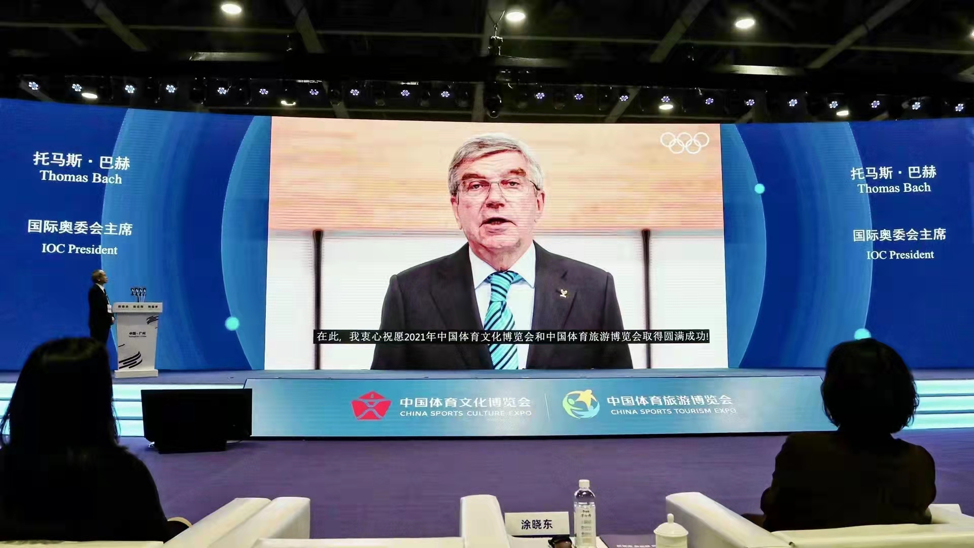 当天,国家体育总局副局长杨宁、国家体育总局宣传司司长涂晓东、广州市副市长王东等嘉宾出席开幕式。国际奥委会主席托马斯·巴赫,国际奥委会名誉委员、香港奥委会主席霍震霆以及多位世界单项体育组织主席、秘书长通过视频方式发表主旨演讲和致辞。跳水奥运冠军杨景辉、陈艾森和体操世界冠军刘婷婷来到博览会现场助阵。