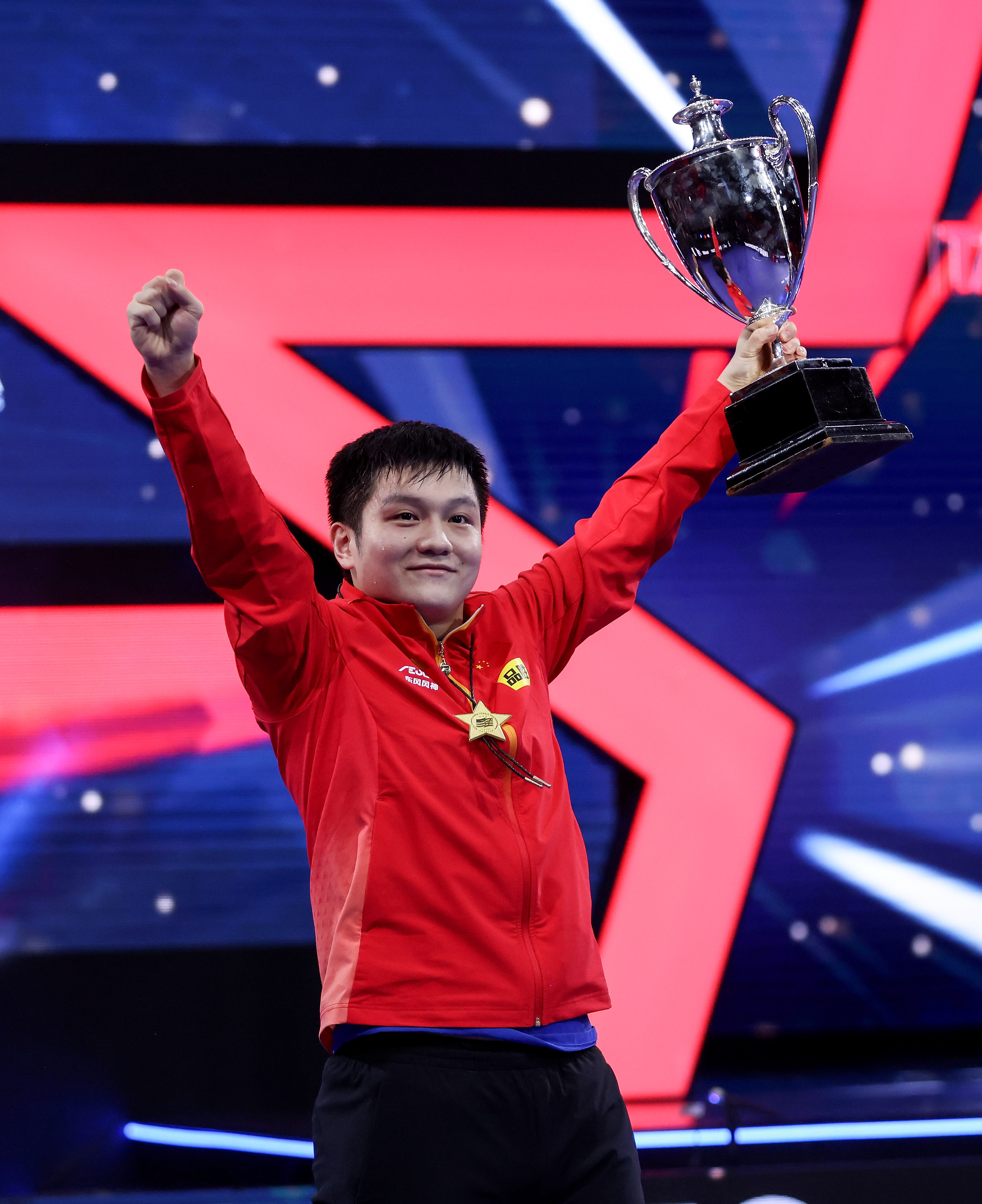 樊振东此前已经四次夺得男子世界杯冠军,加上休斯敦世乒赛男单冠军,他离成就大满贯还缺一枚奥运会男单金牌。最近的一届,就是三年之后的2024年巴黎奥运会。毋庸置疑的是,在休斯敦捧起圣?勃莱德杯之后,24岁的樊振东正式扛起领军中国男乒的重任,他将在巴黎奥运会上全力冲金。樊振东表示,本届世乒赛是巴黎奥运周期的首个乒乓球单项世界大赛,自己能够获得冠军,对增强自信很有帮助。“我希望通过一次一次的比赛,继续很好地磨练自己,让自己有更大的进步。”