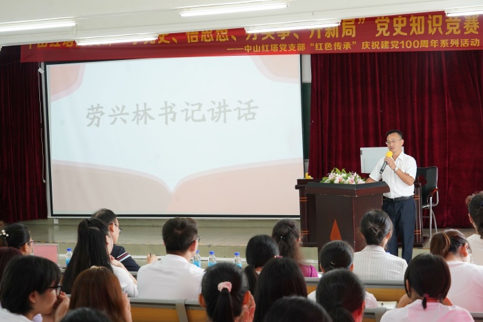 大会第四项,由中山红塔党支部书记、中山市广大汇翠学校理事长劳兴林同志讲话。