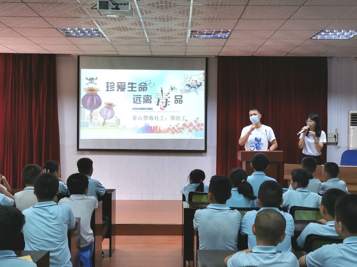 活动中,沙溪禁毒办社工们针对青少年好奇心强,辨别能力、自制力较差,容易受犯罪分子的诱惑利用这一特点,以刑事责任年龄和毒品的严重危害后果为切入点,用干练利落的言谈举止,幽默风趣的表达风格,独特活泼的授课方式,系统地引导学生学习什么是毒品、什么是吸毒、毒品的危害、毒品预防类、以及拒毒技巧等知识。警醒同学们要珍惜自己美好的青春年华,选择健康的娱乐活动和生活方式。同时,在禁毒工作人员梁社工的引导下,六年级学生一起观看了禁毒动画短片《阿威 禁毒侠出场》,并且邀请了动画片的主人公阿威来给学生讲述自己戒毒的过程和毒品给自己、家庭带来的伤害。