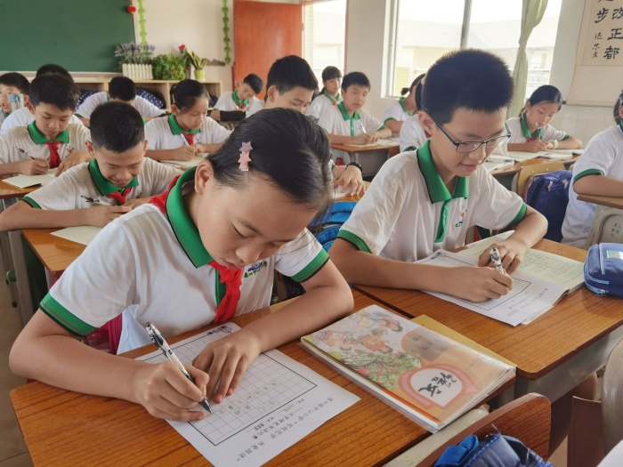 各年级也举办了特色鲜明的推广普通话活动。一年级的小同学化身小老师,用标准的普通话向长辈们诵读课文或讲述生动有趣的故事,让推普活动走进家家户户。二年级的红领巾宣讲员们同学们字正腔圆、声情并茂地讲述了英雄先烈们的英勇感人事迹,传承红色基因。三年级的同学们为推普活动设计了一幅幅版式精美的推广普通话宣传标语。四年级老师和同学们精心挑选诵读内容进行诵读经典诗文比赛。千年流传的文化古韵,伴着稚嫩的声音,为校园增添了浓厚的文化韵味。五年级开展了绘制“讲普通话,写规范字”手抄报比赛活动。同学们通过精美的手抄报,用实际行动响应祖国“推普”号召,抒发自己的爱国情!汉字硬笔书法比赛在六年级中开展。同学们笔尖流转出一行行优美的汉字,在字里行间发现中华文字的魅力,发现中华文化的深厚内涵。
