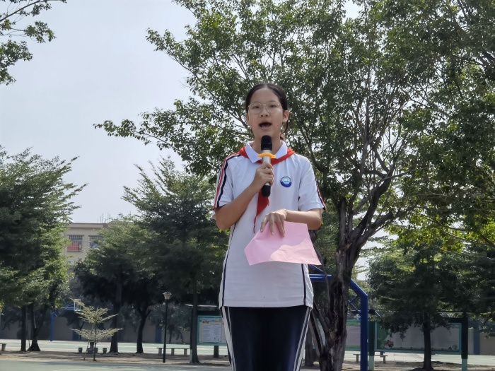 初一年级级长谢仕浩向全体学生宣讲防空警报试鸣宣传资料,解读防空警报蕴含的含义,让学生清楚学校足球场为假定的防空疏散区域,战时要紧急疏散到防空地下室隐蔽,没有防空地下室可以紧急疏散到普通地下室、地下通道、地下车库或不容易暴露身体的区域。他还对此次演练中存在的拥挤、奔跑速度等个别问题进行了提醒和强调。