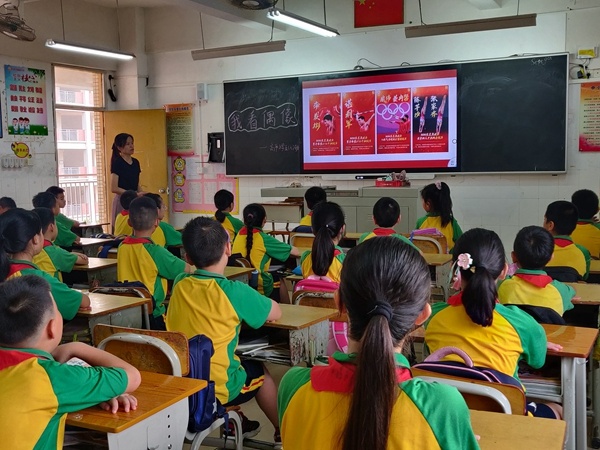 各班主任通过讲述奥运故事以及和同学巧妙的互动,从“中国,我为你骄傲”“铭记辉煌,不忘苦难”“三年只为那0.01的改变”“真正的荣誉”“奥运精神:不只是金牌”五个方面入手,再现了中国奥运健儿夺冠的激情时刻和金牌背后的感人故事。健儿们在赛场上个性张扬,赛场下率真活泼。舒展又充满力量感,散发出由衷热爱运动的精神气质。奖牌辉煌的背后,是他们一次次迎难而上和挑战自我。