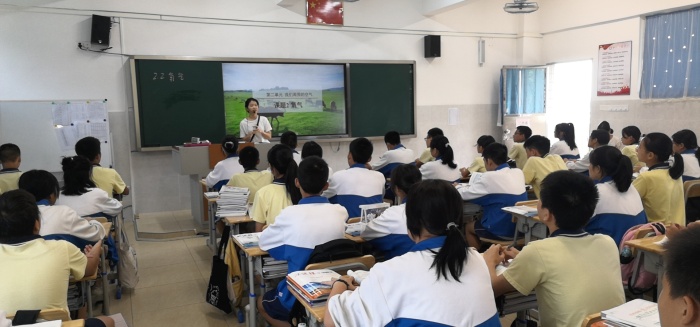 首先,陈琼友和任哲各上一节新教师展示课。陈琼友老师《氧气》通过实验引导学生系统学习氧气性质,激发了学生的学习热情。任哲老师《生物与环境组成生态系统》从中国成语引入学习,通过实验探究学习生态系统,引导学生书写食物链,学生积极参与课堂。