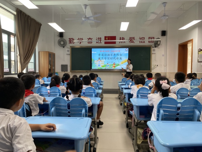 2021年9月13日至19日是第24届全国推广普通话宣传周,中山火炬高技术产业开发区博凯小学大力宣传,广泛发动,以“普通话诵百年伟业,规范字写时代新篇”为主题,开展了形式丰富的普通话推广宣传活动。