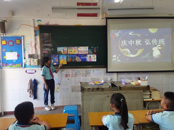 9月18日,为了让学生更深入了解中秋节文化,少先队大队辅导员朱文娟老师在国旗下深情地讲述关于中秋节的来历,与学生们一起吟咏文人墨客的经典诗文,呼吁大家继承祖国优秀传统文化和传统节日,增强民族文化自信心。班会课上,班主任有条不紊地开展活动。如一、二年级的小朋友,在爸爸妈妈的帮助下带上月饼、水果等美食,与同学们开展中秋传统美食交流会。三、四年级开展一次中秋创意灯笼展示会。会上,学生提着亲手制作的灯笼得意地分享他们的制作乐趣。