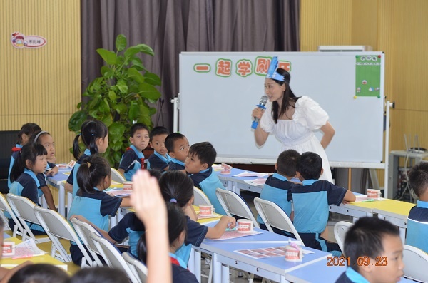 马岭小学高善妍同学为大家宣读本次活动的倡议书后,由竹苑小学谢桃老师为二(1)班的同学上了一节口腔健康教育示范课。课上,谢老师扮演成“小蛀虫”,通过绘本故事《蛀虫日记》让同学们学习了《一起学刷牙》。同学们在课堂上学会了如何正确刷牙,预防龋齿,掌握了口腔健康常识,迈开了自主保护牙齿的第一步。