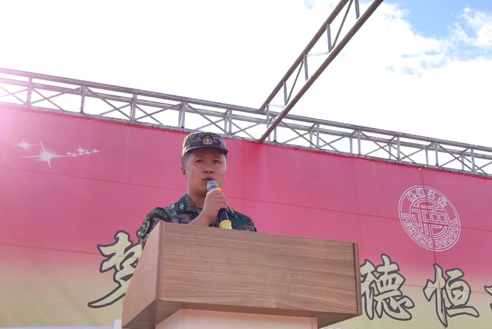 高一1班范天铭同学作为学生代表发表了讲话,“要向教官学习,加强集体观念的培养;要严格要求自己,让每一天都有新的收获和感悟。”