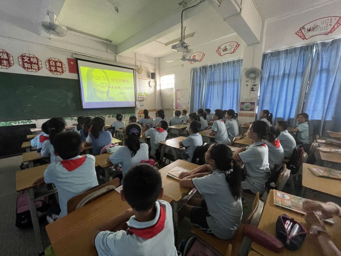 据央视新闻2021年09月25日21:49报道:孟晚舟女士乘坐中国政府包机抵达深圳宝安国际机场平安回国。9月29日下午,乐群小学以此为契机,组织各班开展“信念的颜色”主题班会,强化学生的思想道德建设,对学生进行爱国主义教育。