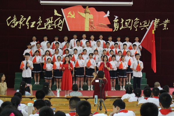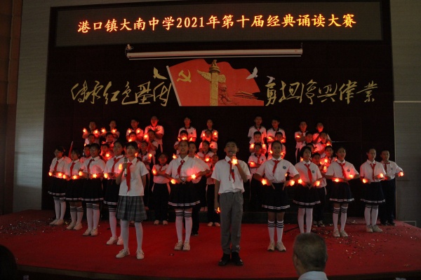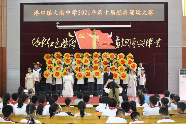 为庆祝中华人民共和国成立72周年,充分展现广大师生永远跟党走、奋进新征程的精神风采,2021年9月29日下午,港口镇大南中学在一楼阶梯室举办以“传承红色基因 勇担复兴伟业”为主题的第十届经典诵读大赛。