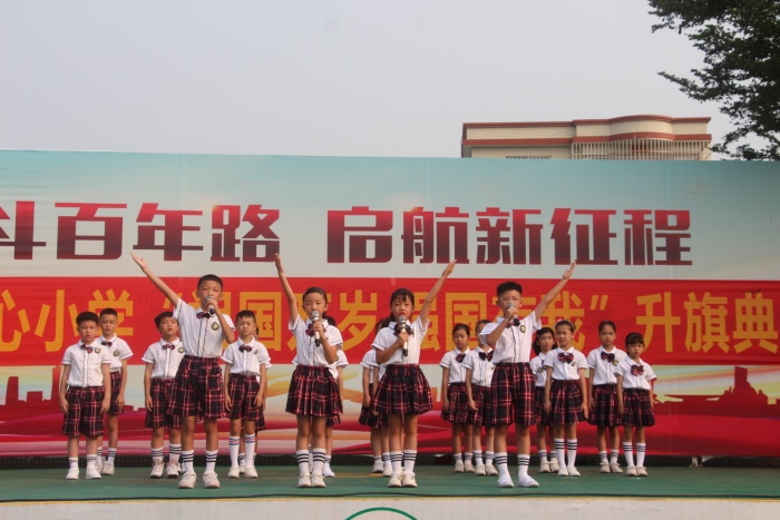 活动伊始,雄浑的国歌荡漾在校园,初升的红日照耀在美丽的中心小学。当激昂的国歌响起,鲜艳的五星红旗缓缓升起,全体师生行注目礼,用心感受着国旗升起的庄严时刻。升旗仪式后,吴博事校长发表热情洋溢的致辞。吴校长深情祝贺祖国72岁华诞,72年风雨兼程,72年励精图治,伟大的中国发生了翻天覆地的变化。他盛情邀请全体师生,高声同祝:“祖国,生日快乐!祖国万岁,强国有我!”向全体师生寄予厚望,勉励大家用实际行动擦靓那一抹“中国红”,涵养家国情怀,砥砺强国之志,为祖国的伟大复兴共同奋斗!随后,校合唱队演唱《少年,少年,祖国的春天》,学生们嘹亮的歌声饱含向往祖国美好未来、期待中华民族振兴的热切希望。学校致力于把下一代教育好、培养好,从娃娃抓起,从小根植爱国情怀,立志报国。三(6)班学生共同朗诵《祖国妈妈,我爱您》。他们的朗诵充满激情,或慷慨激昂,或低沉婉转,或抑扬顿挫,以饱满的热情,挺直的脊梁,发自肺腑声音,深情诉说着对祖国的热爱。