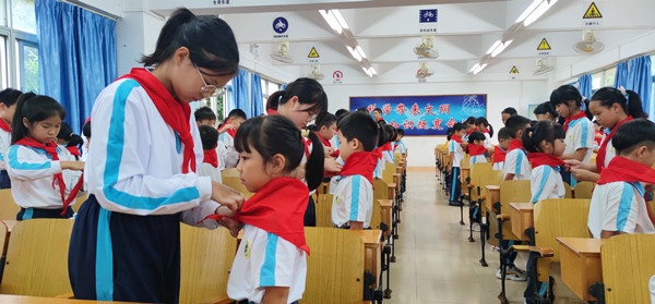 仪式前,学校通过对第二批入队学生德智体美劳等方面的考察,经由班主任与各任课老师评选,最终确定新队员58名。同时,还组织同学们进行了队前学习和入队考核,让他们对中国共产党、少先队组织有了更深入的了解。