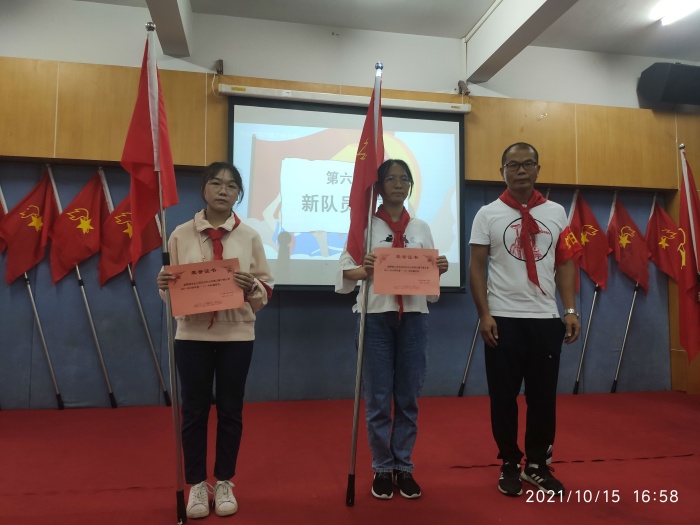 大队辅导员林静敏老师宣读了新队员入队名单,并对新队员入队表示热烈祝贺。在大队辅导员的领下,在庄严的队旗下,高高地举起右手大声宣誓,时刻准备着为共产主义事业而奋斗!接着由新队员代表林永辉同学和老队员代表李文骏同学做了精彩的发言,梁广平主任对新晋中队授予中队旗并颁发聘书。最后再新队员坚定的呼号声中结束了本次的仪式,相信他们能在星星火炬的指引下,牢记党的教诲,全面发展,茁壮成长。