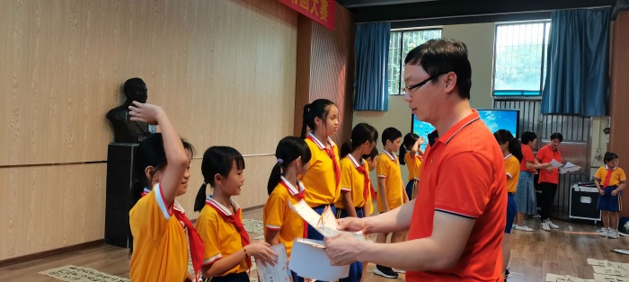 经过一小时的比赛,同学们完成了作品的创作,各评委老师分别评出了绘画组和书法组的一、二、三等奖。书法组负责人柏远平老师、郑红玉老师暨对此次的书法比赛取得的进步进行了表扬,同时也指出了同学们应该改进的方向。转眼看向绘画组这边,艺术科组长和美术老师廖月玲对可取之处和不足之处分别做了点评。最后陈敏华校长总结了此次活动的重要意义,希望在以后的日子里同学们不断提高综合素养,赓续百年初心,弘扬伟大爱国精神,少年儿童应该自觉融入国家发展大局,为中华民族伟大复兴中国梦贡献力量,共享民族复兴的荣光。