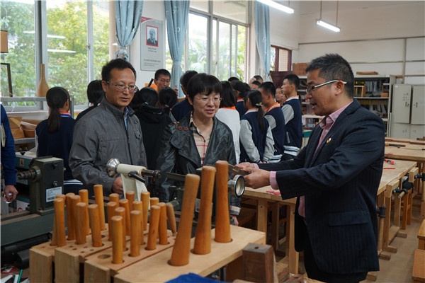 吴全全所长一行参观了学校灯饰专业实训室、汇通财税工作室、创业一条街、产学研基地、机械工厂、启创中心等,深入了解中山一职近年来的办学情况、专业建设情况、实习实训情况,了解名校长工作室开展情况。在参加过程中,龙卫平校长介绍了中山一职独特的办学理念、办学思想、办学品牌。当吴所长看到中山一职专业工作室丰富多彩的作品、精美精致的产品时,看到中山一职优秀毕业生获全国技能大赛第一名,成为大国工匠,点赞学校的办学理念先进、发展定位明确、专业特色明显、育人成效显著。